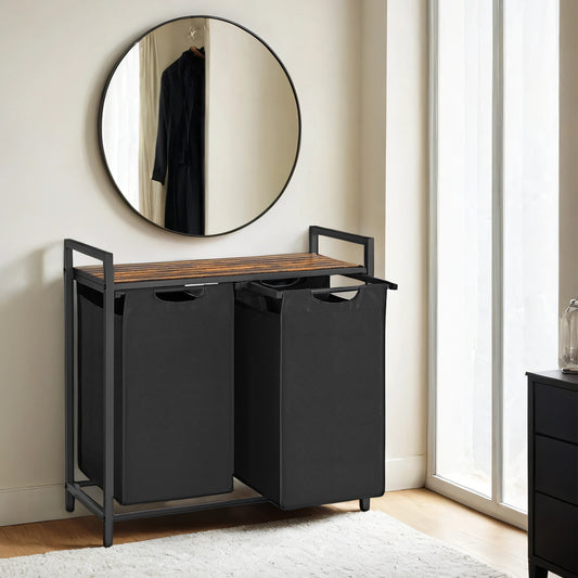 Wäschekorb mit 2 Fächern und Ablage